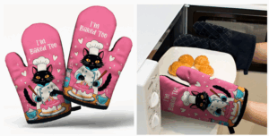 Another must-have for cat-loving cooks is a set of kitty paw oven mitts. These adorable mitts protect hands from the heat while bringing a smile to the face of anyone who sees them.